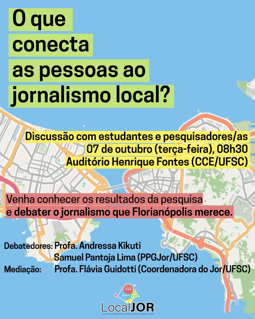Aberto ao público em geral, o evento é organizado pelo grupo LocalJor (Laboratório de práticas para o jornalismo local a serviço dos públicos), vinculado ao Programa de Pós-Graduação em Jornalismo da UFSC, que no segundo semestre de 2024 realizou uma pesquisa por amostragem com 604 moradores de Florianópolis a respeito de sua relação com as notícias. O estudo é registrado no Conselho Nacional de Desenvolvimento Científico e Tecnológico (CNPq) e recebeu financiamento da Fundação de Amparo à Pesquisa e Inovação do Estado de Santa Catarina (FAPESC).